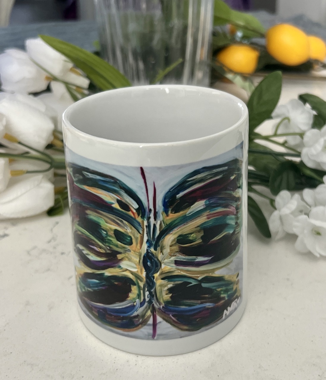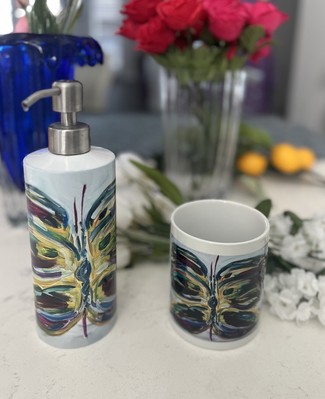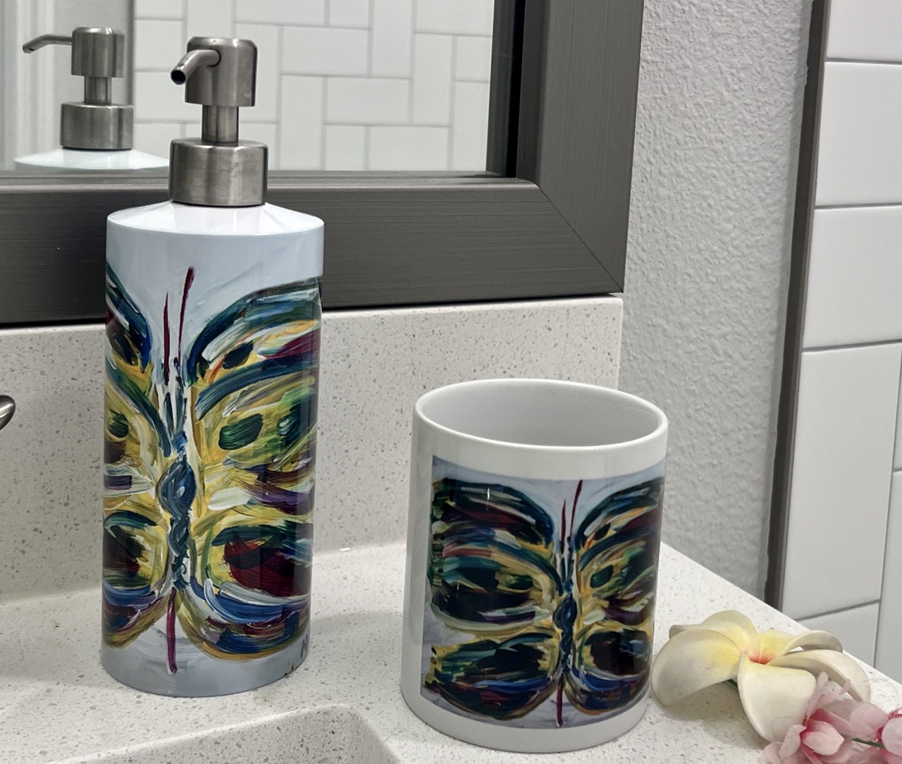 In a beautiful design inspired by my colorful butterfly painting ‘Etienne’