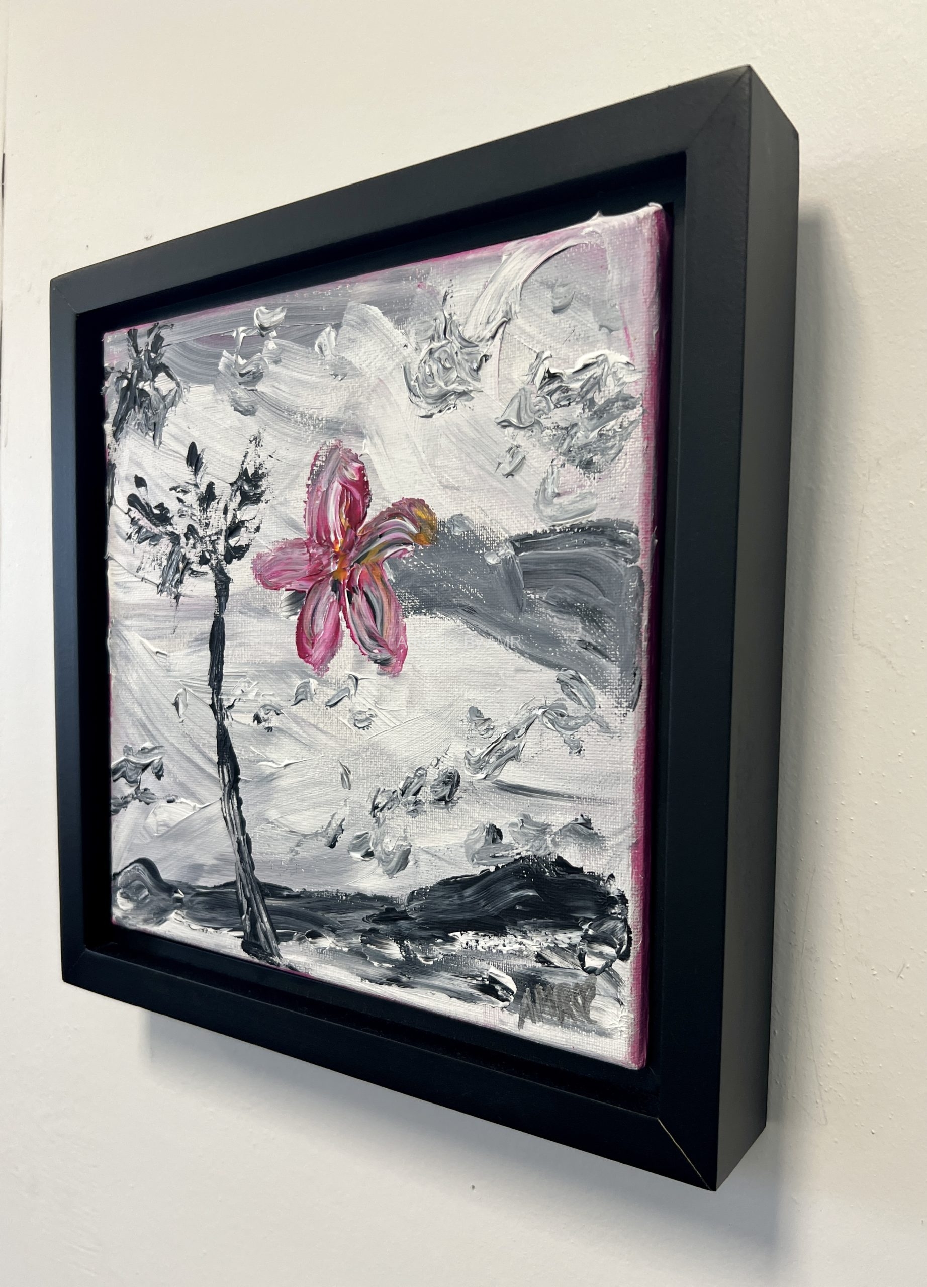 Original Painting in Black Floating Frame with Certificate of Authenticity.