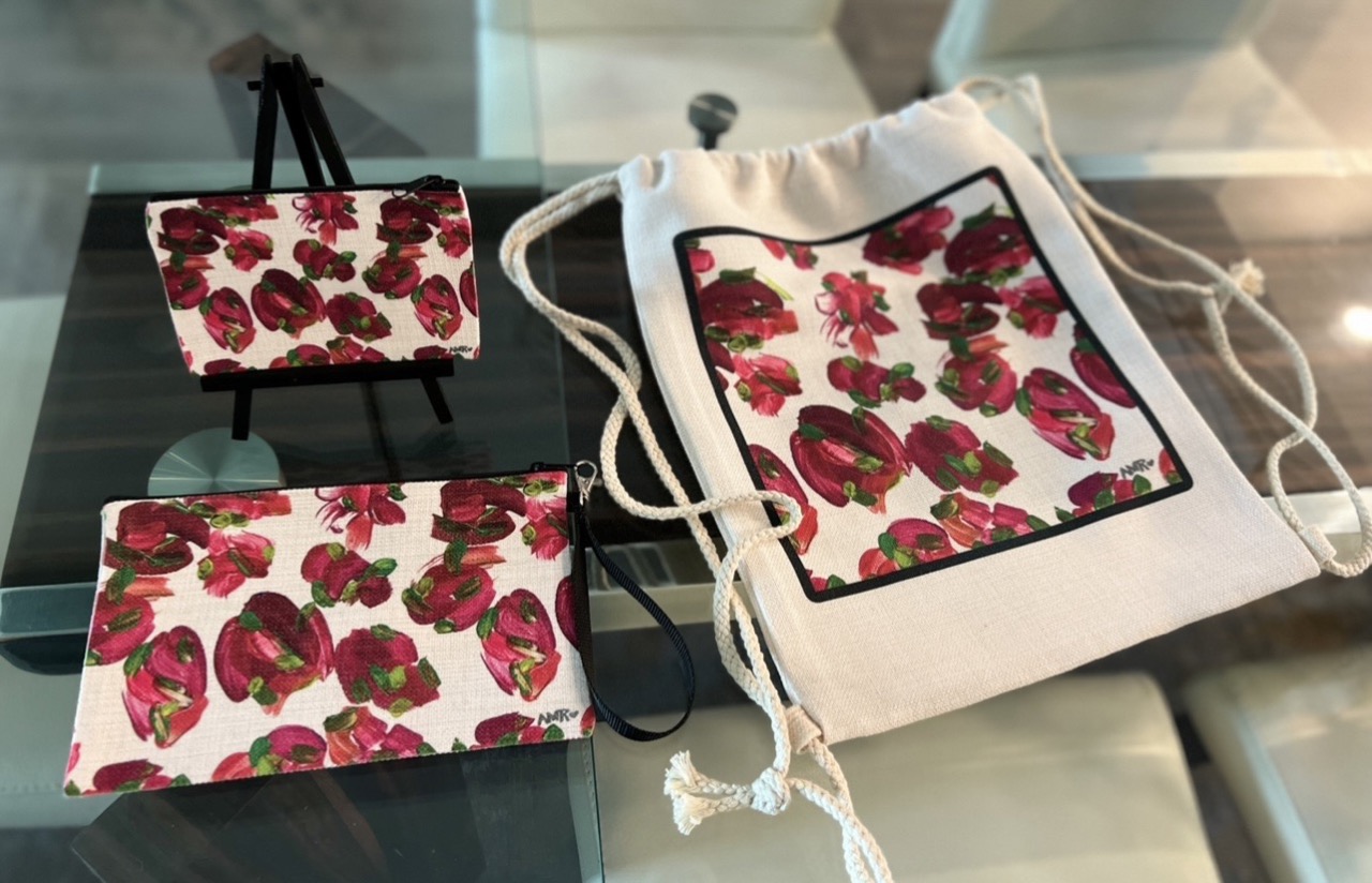 ‘Pitahaya’ – A variation of one of my paintings with a bright, cheerful design. Now available on a functional art inspired linen coinpurse/Card holder. A Perfect everyday small accessory to hold your credit cards, business cards, loose change and smaller items. Slips easily inside the coordinating larger Makeup/Wristlet Bag and backpack or use it alone with any of your other purses or bags.
