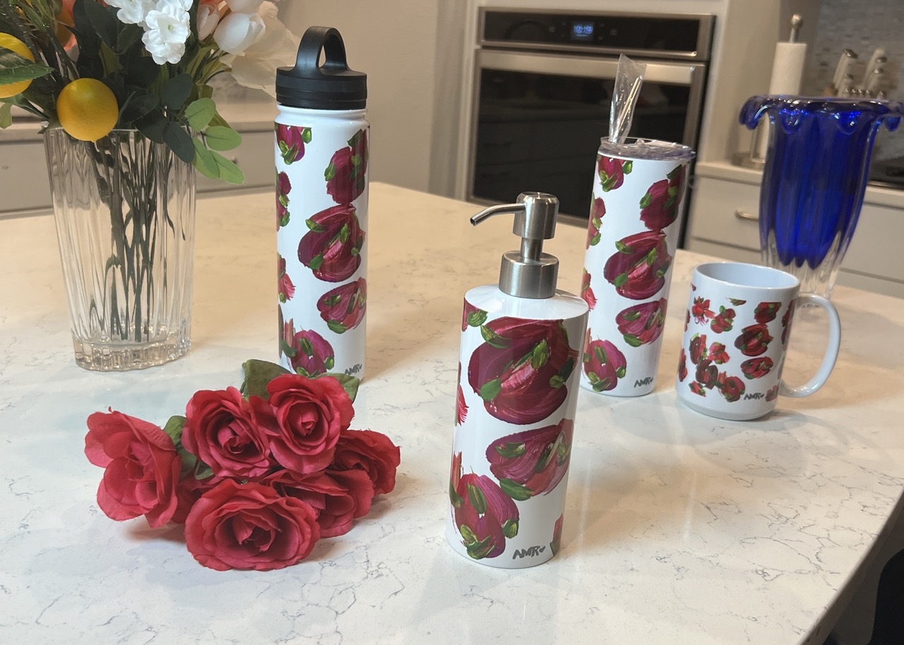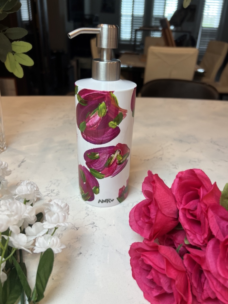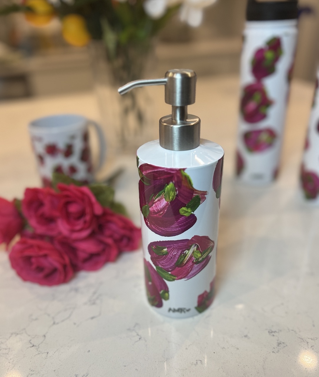 Pitahaya – Dragon Fruit, or Desert Flower in Hawaiian. A colorful vibrant pattern on a soap dispenser to brighten your day. Inspired from the abstract painting I call, Pitahaya!